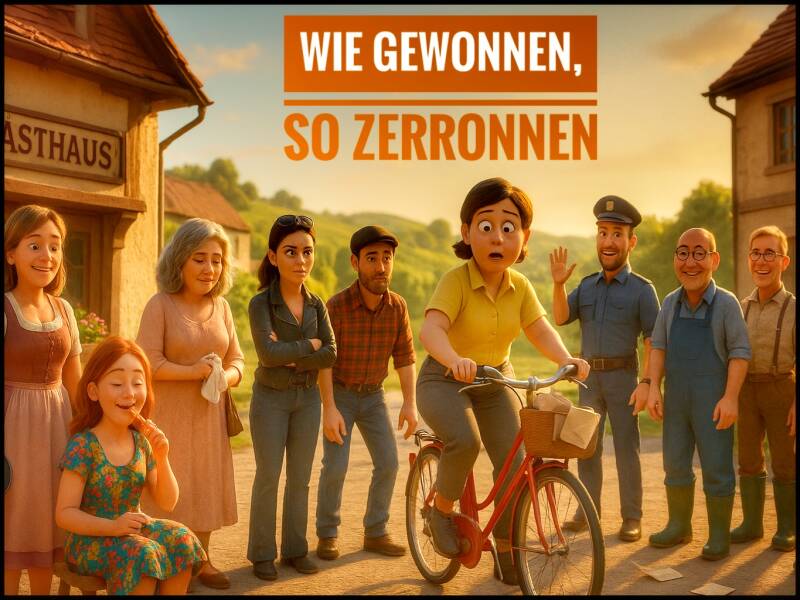 Köbu und Ueli tragen sicherheitshalber das erhaltene Geld auf Mann – man kann den Banken ja nicht mehr trauen. So kommt es, dass das Geld immer wieder zum Vorschein kommt und es bei Natascha in greifbarer Nähe ist – oder besser gesagt „wäre“. Denn da sind noch etliche Figuren, die Unruhe in die ganze Geschichte bringen. Nicht zuletzt Dora, die Briefträgerin, welche mir ihrer Post ein heilloses Chaos anrichtet. Für wen die Geschichte gut aus geht und für wen nicht, sei an dieser Stelle nicht verraten.